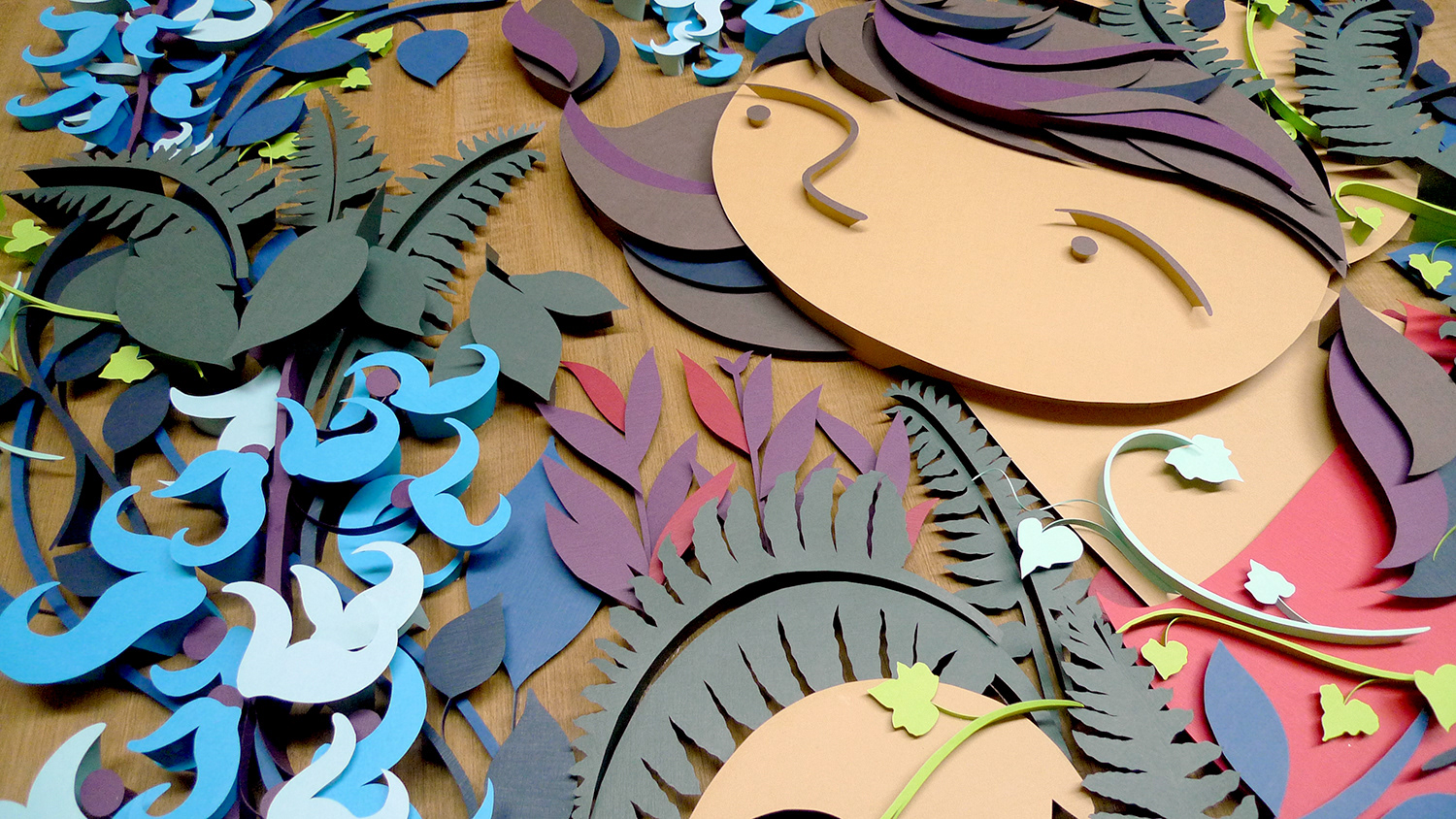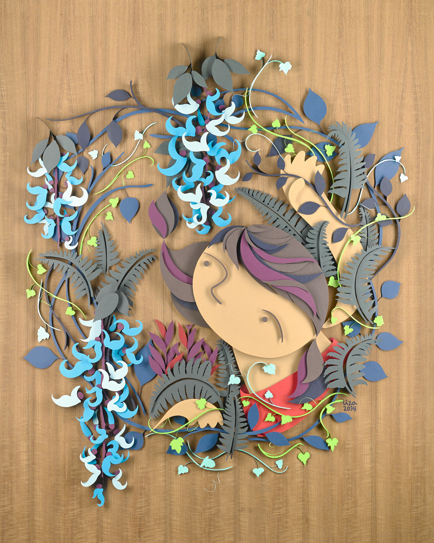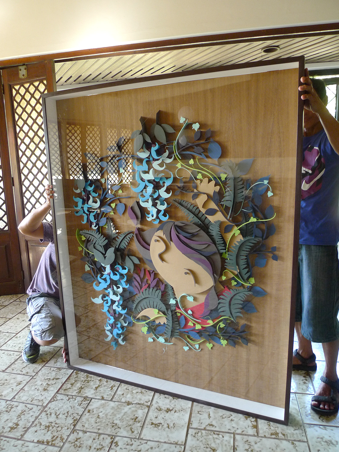 Hand cut paper on wood veneer, 4 x 5 feet Illustration for Art Fair Philippines 2014 The Link, Makati