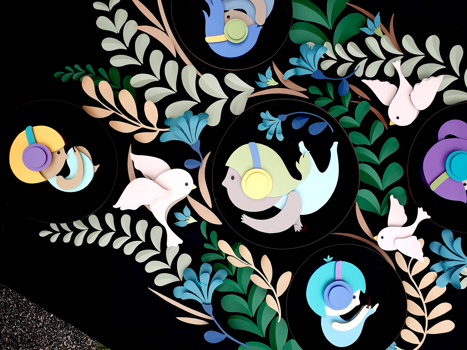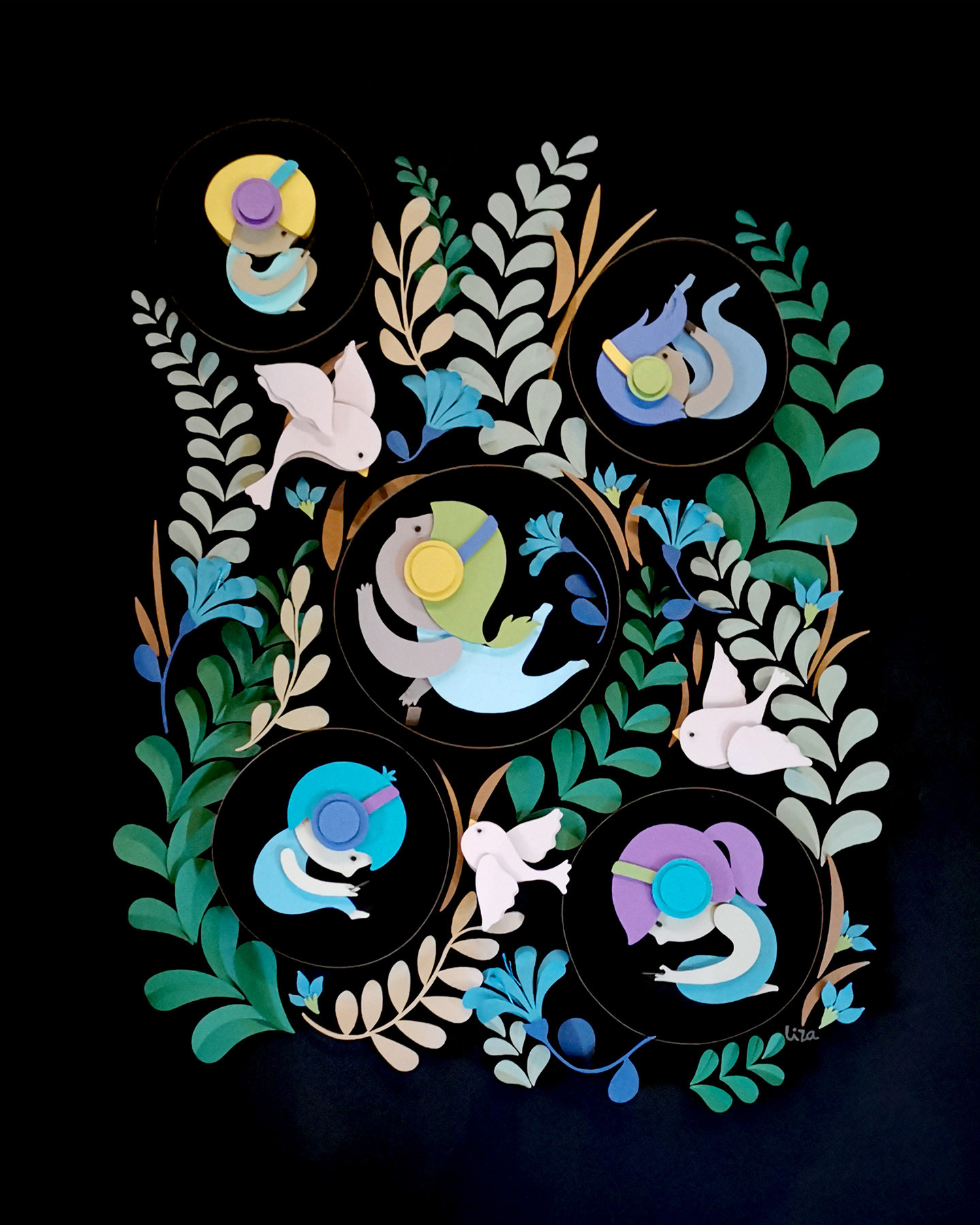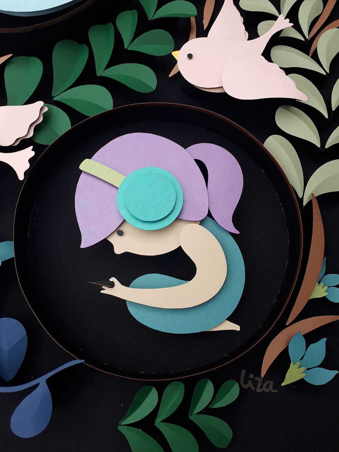 Hand cut paper on canvas, 4 x 5 feet Illustration for Wordless Storytelling Exhibition CANVAS Gallery and Gardens, 2019